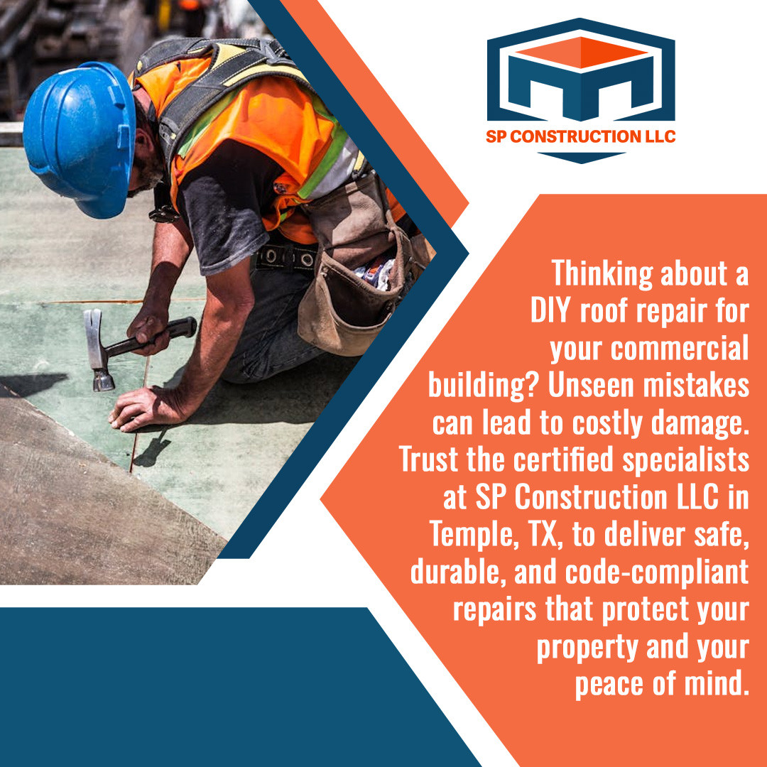 Professional repair combines expertise, precision, and long-lasting results for commercial properties. Certified roofing specialists deliver accurate repairs, prevent common mistakes, and follow strict professional protocols on every project. With quality materials, code-compliant techniques, and routine inspections, property owners can protect tenants, safeguard assets, and extend the lifespan of their roofing system. Tailored maintenance programs proactively maintain roofs and help prevent costly repairs. Contact SP Construction LLC at (254) 931-9313 or [email protected] for trusted, durable, and efficient solutions.