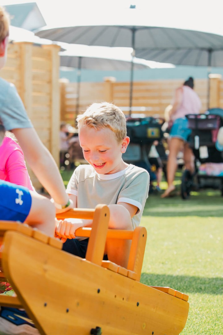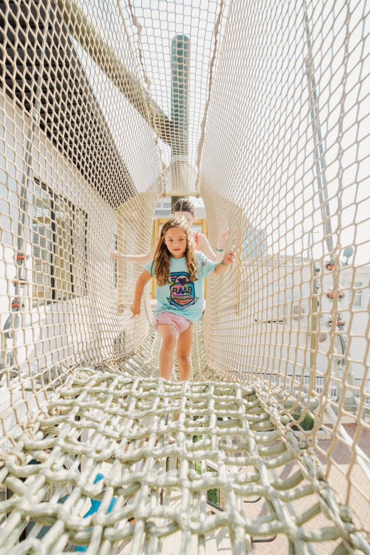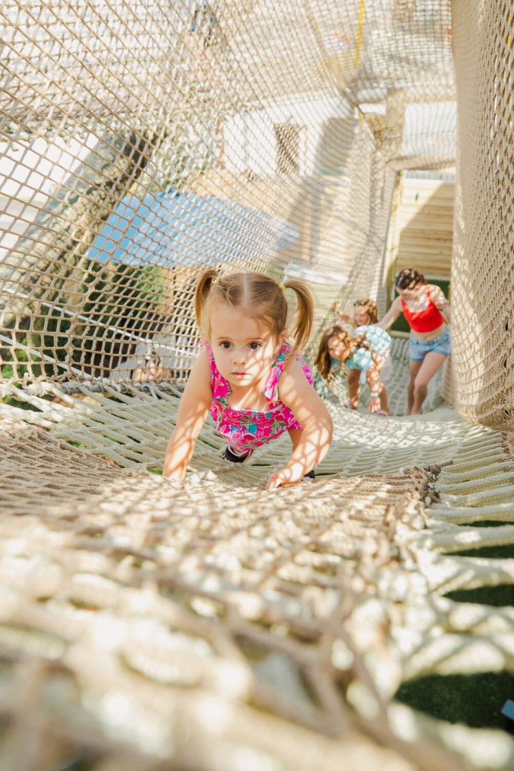 In addition to The SkyNet, The Yard includes ground-level activities referred to as “under the net” experiences. These areas are designed for children ages 1 and older and provide age- appropriate sensory and exploratory play options. The layout allows families with children of different ages to share the space while engaging in activities suited to each age group.